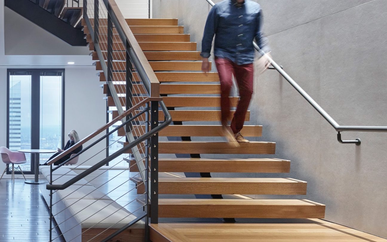 We worked with the Forest City team to build that new space on seven floors of Key Tower, a Cleveland skyline landmark. The building itself helped Forest City meet one of its goals: to exemplify in its own offices the work/live/play connections they promote in their portfolio.