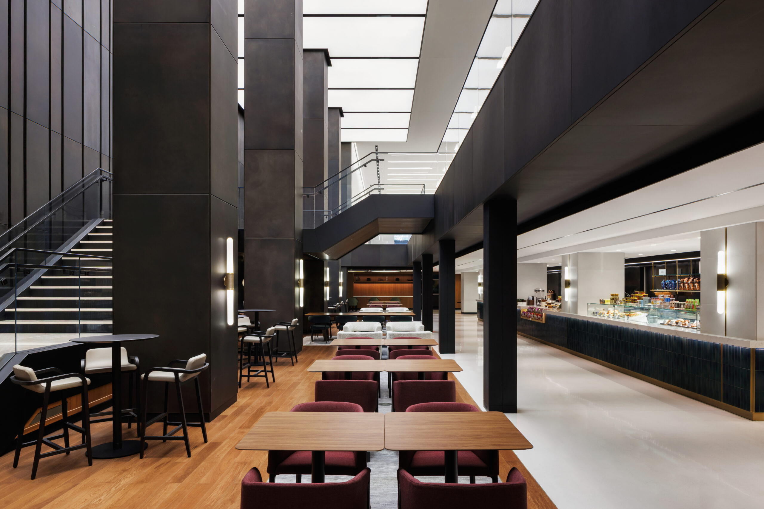 In addition to the lobby and amenities design, our team will continue to work with One Madison Avenue to explore and uncover opportunities that maximize the building’s value and amenities throughout the ground floor, lower levels, second floor, and upper floor terraces. Those exercises include programming for potential event space, an urban food market, and various retail typologies highlighting the building’s ability to accommodate a variety of business models, such as a high-end restaurant and fitness center. The goal for the ground floor public space is to balance the maximum commercial value of the retail amenities with the least disruption to building and entry sequencing.