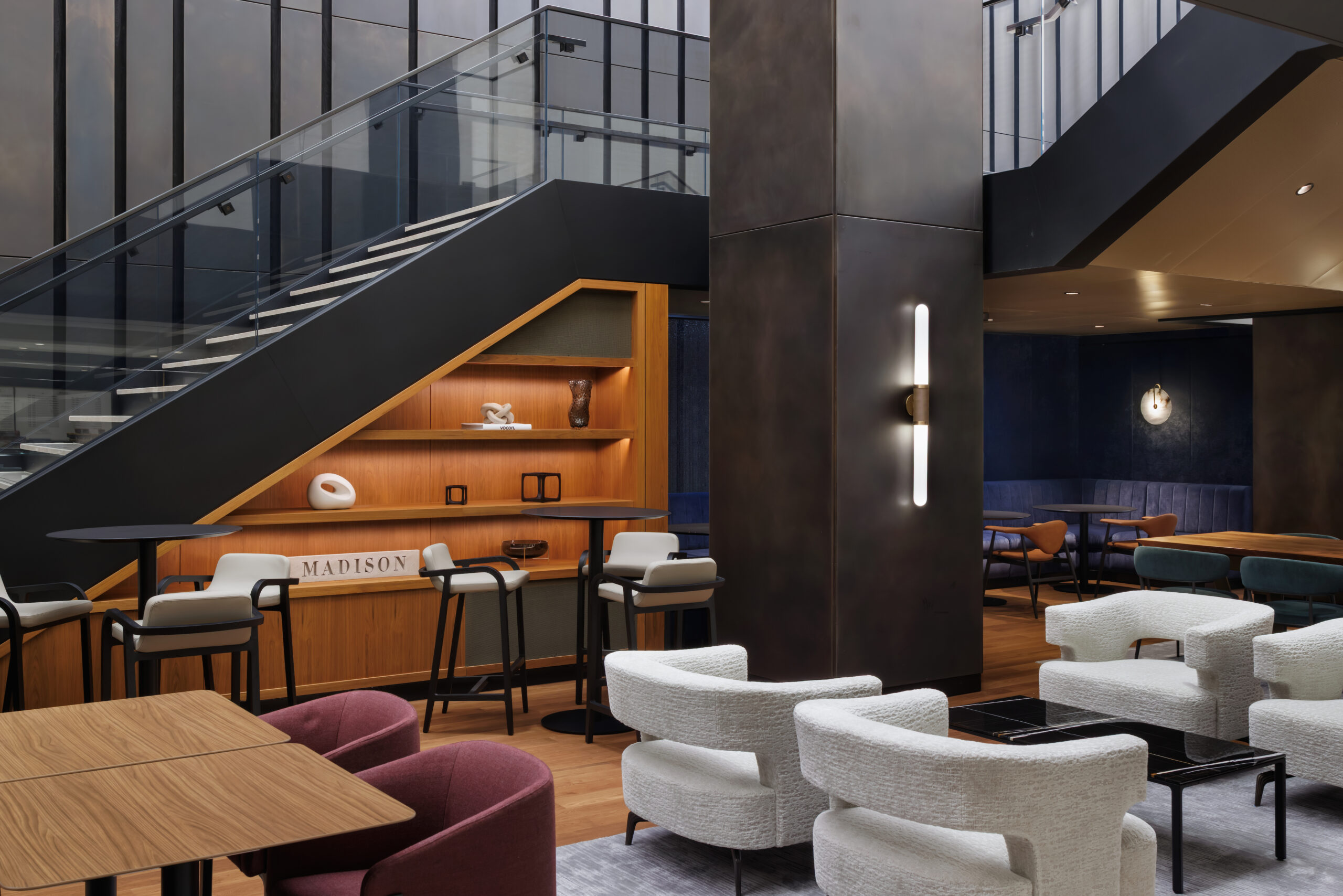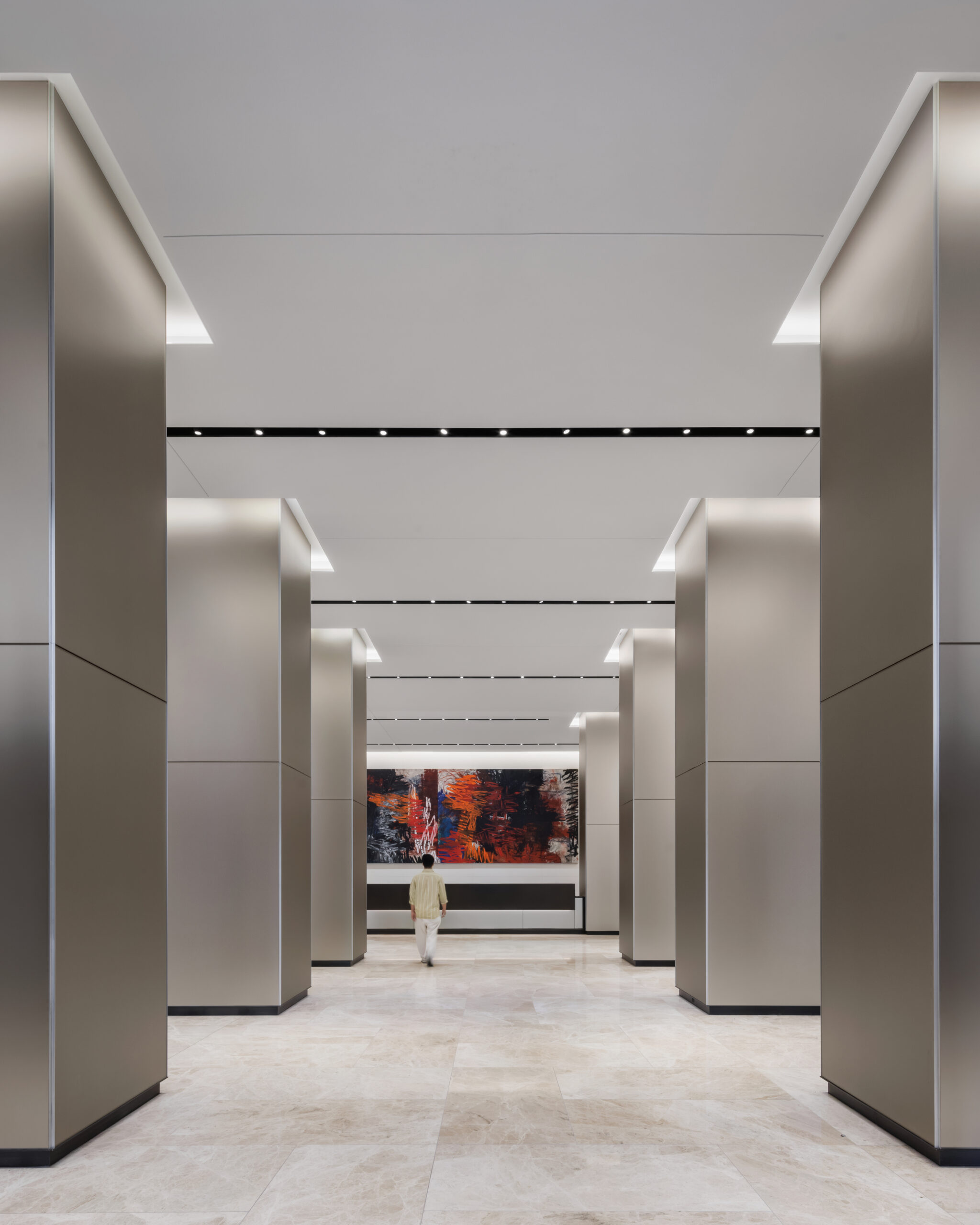 We are currently working on a varying degree of scope, most prominently including the building lobby and amenities design. With connection between Park Avenue and Madison Square Park being a driving factor for our design team, we created a through-block lobby that features a lightwell and monumental stair. We continue to refine the design for ‘future proofing’ for potential tenant negotiations and have studied a variety of private dedicated entry scenarios on the ground floor.
