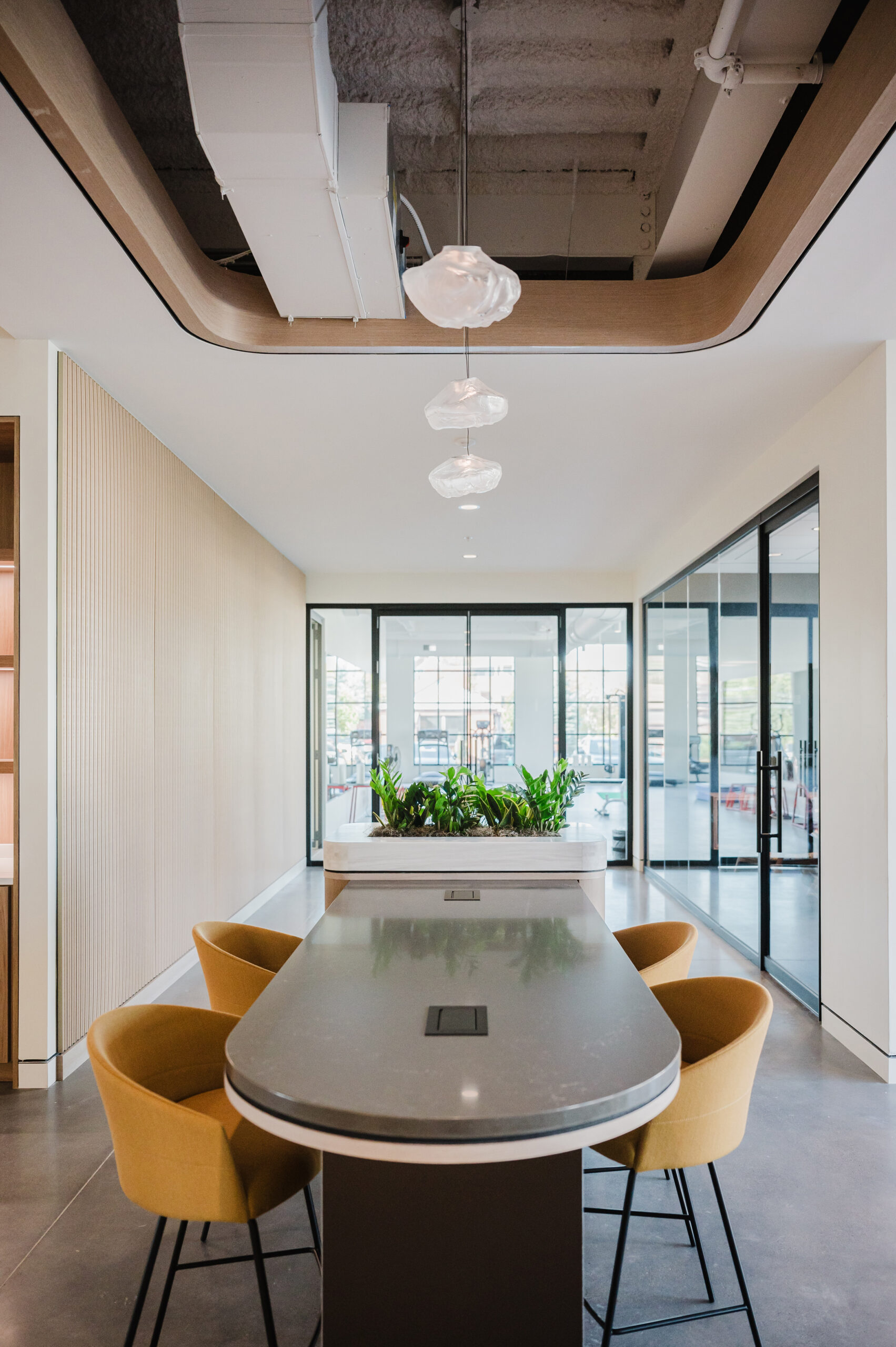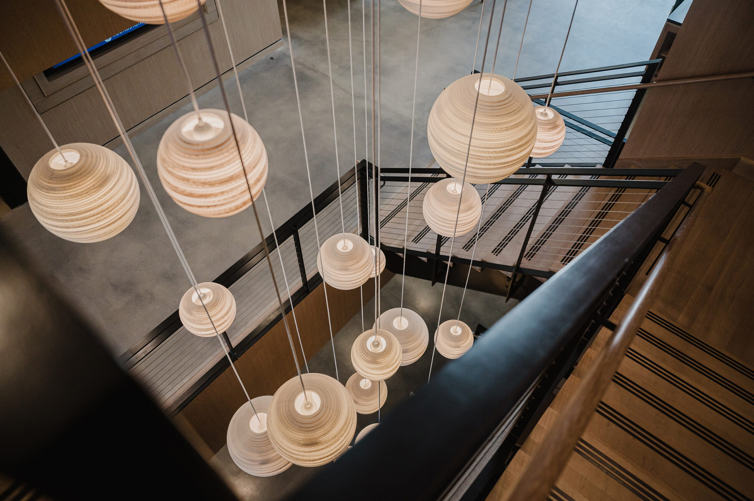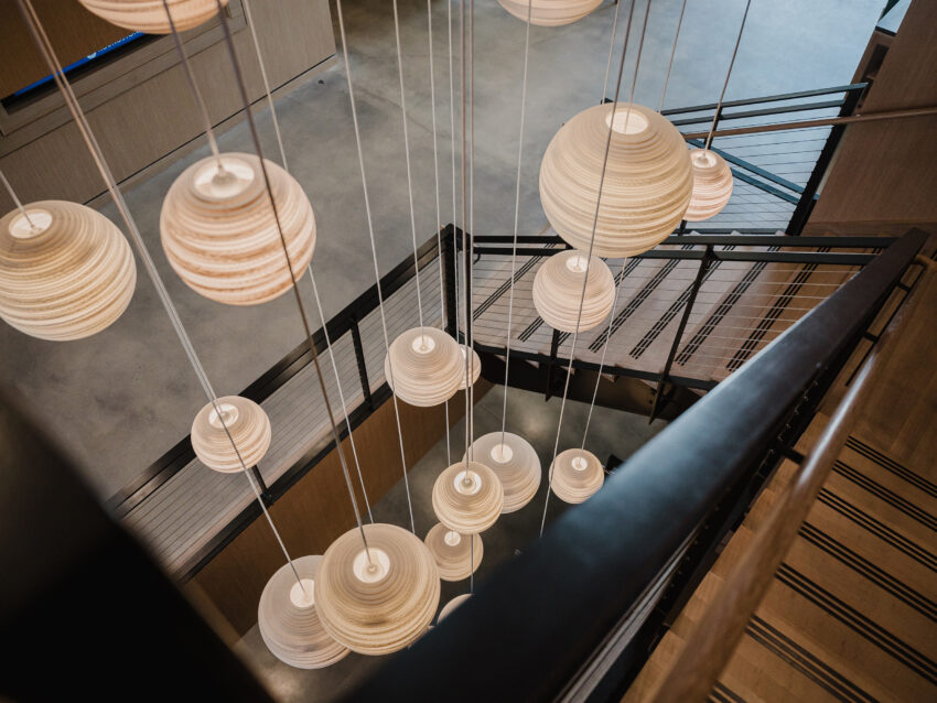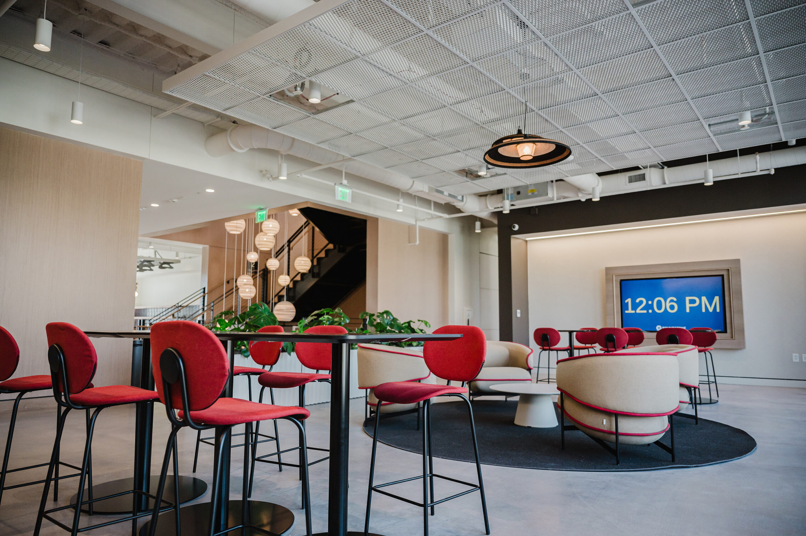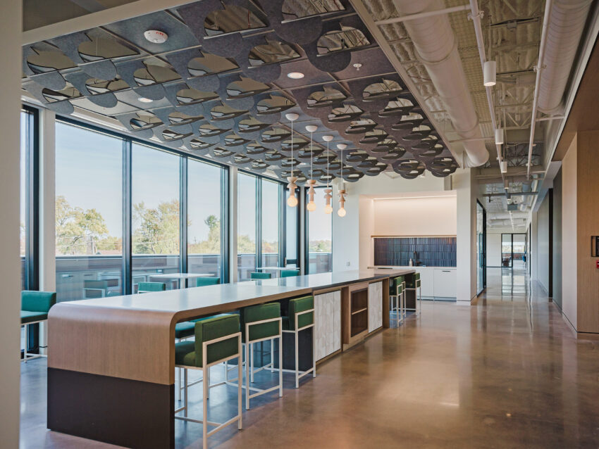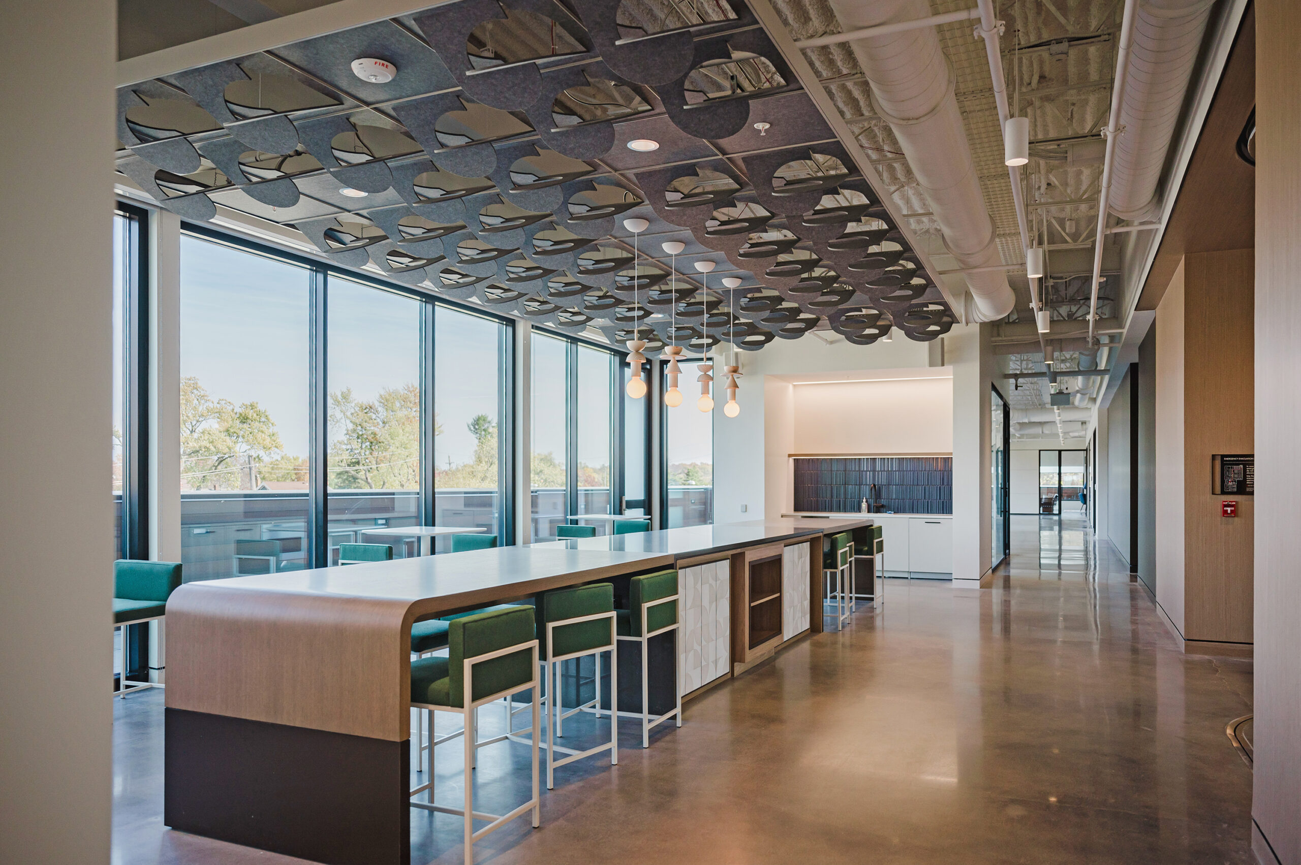 Project design inspiration derived from Cowan Pottery, the original site occupant, and Roundstone’s love for Irish heritage. Cowan Pottery elements are sprinkled throughout the space to honor the site historic nature. The brick building exterior design adapts to neighborhood setting and features outdoor terraces on each level. With an abundance of natural light, the interior features general workspace along with various gathering spaces including multiple cafes, meeting/collaboration rooms, training center, fitness room, golf simulator, podcast room and lounge areas. A three-story staircase captures the essence of the open floor plan connecting floors and team members. Collaboration amongst Roundstone employees is critical for success and the new headquarters supports that philosophy.