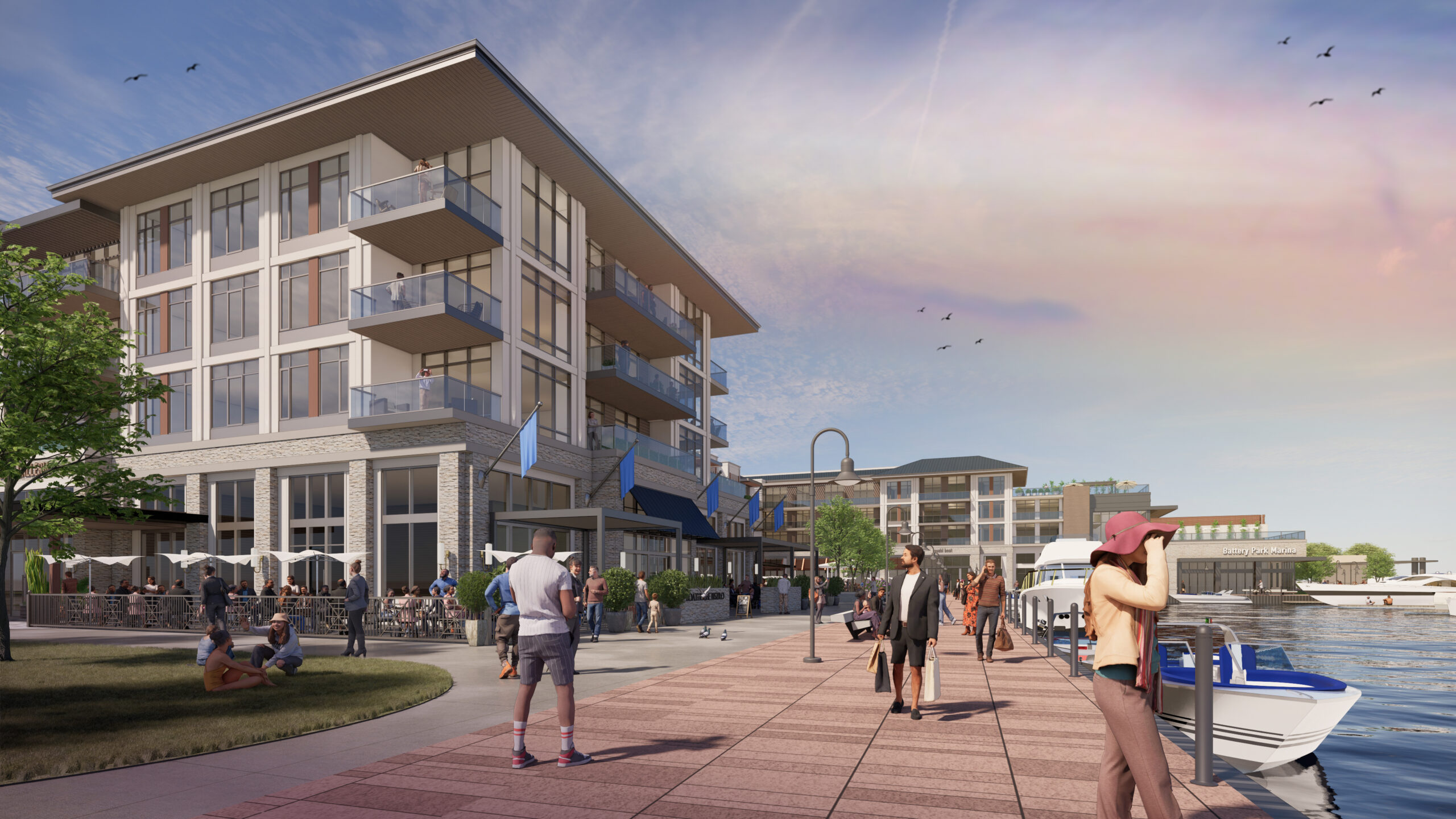 The full build-out includes approximately 240 residential units (condominiums and apartments), 40,000 square feet of retail, structured parking, a new hotel, a private marina, and complete new public infrastructure. The project is advancing in phased implementation, with construction of the first phase of buildings and public-realm improvements beginning in 2026. Battery Park demonstrates our team’s ability to translate a waterfront vision into an implementable, phased district framework— aligning infrastructure, public space, tourism dynamics, and development strategy to extend downtown to the water and catalyze broader lakefront reinvestment.