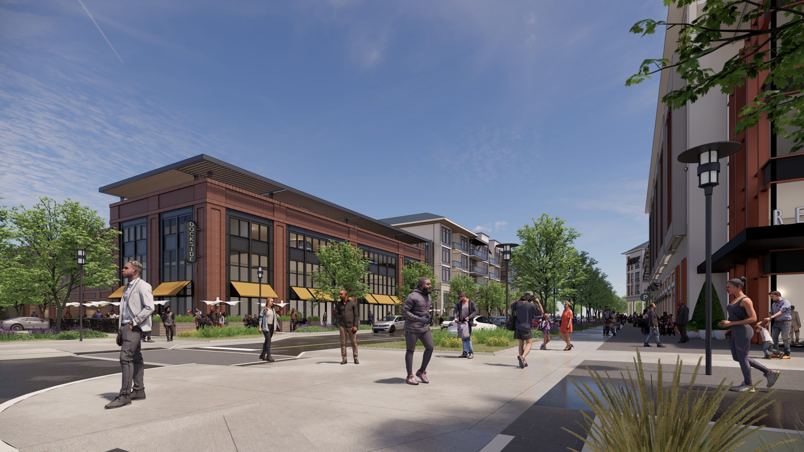 The master plan establishes a public-realm-first framework that organizes streets, open spaces, and waterfront access before vertical development; ensuring that early infrastructure and public-space investments create lasting civic value and support phasing flexibility. New public streets, promenades, and a one-acre waterfront park structure the district and connect directly into the existing downtown retail corridor, catalyzing reinvestment across the broader waterfront area.